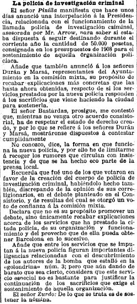 El 28 de enero de 1907, trescientas corporaciones locales catalanas se reunieron en Barcelona para tratar sobre la inseguridad en la capital. Grupos anarquistas llevaban años poniendo bombas sin que el gobierno hubiera sido capaz de atajar la sangría.
