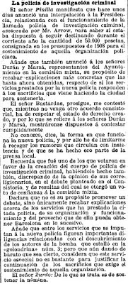 La decisión más importante que se tomó en aquella asamblea fue la creación de una nueva policía que solo obedeciera las órdenes de las autoridades locales. Para dirigirla, se buscó a una persona que estuviera por encima de las luchas políticas españolas: el inglés Charles Arrow, Inspector Jefe del CID —Departamento de Investigación Criminal— de Scotland Yard, un policía experimentado y de prestigio. Su contrato, por tres años, fijaba un sueldo total de 2.700 libras esterlinas y un seguro de vida. Mucho dinero para la época.