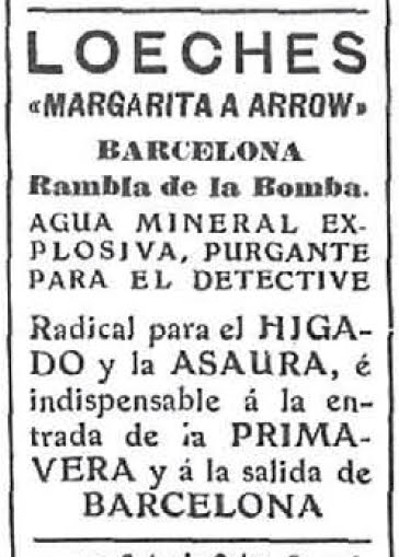 Arrow llegó el 21 de julio. Además de su propia policía —Oficina de Investigación Criminal, OIC— y de los diferentes cuerpos de seguridad del Estado, la lucha contra los anarquistas había reunido en Barcelona a agentes secretos británicos, al mando del coronel Morera, y a los franceses del comisario Bonnecarrère, enviado por la Prefectura de París. Aquello era un todos contra todos: cada cual colocaba topos en la competencia y usaba soplones que eran, en realidad, agentes dobles o triples. Un lío.